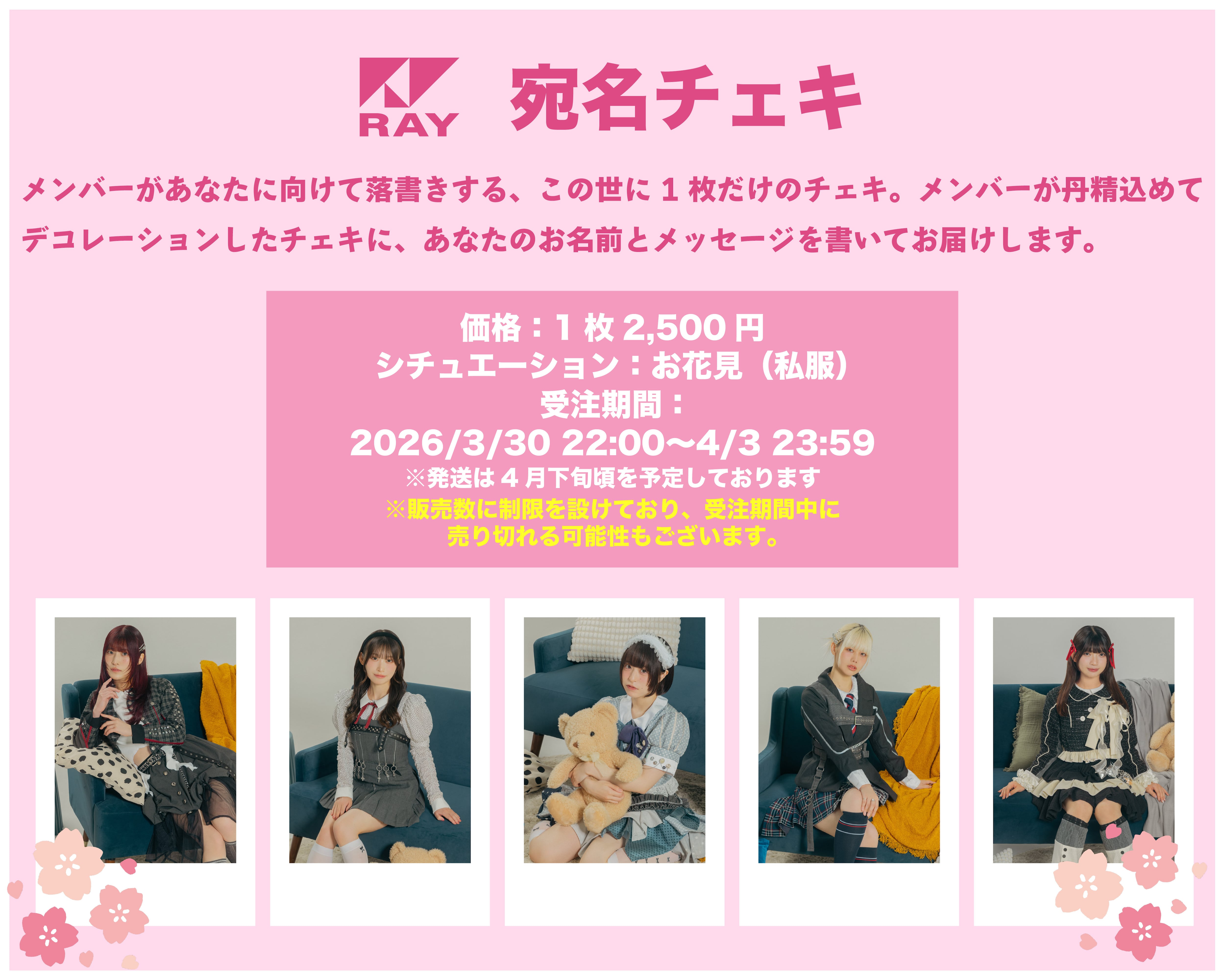 メンバーがあなたに向けて落書きする、この世に1枚だけのチェキ。メンバーが丹精込めてデコレーションしたチェキに、あなたのお名前とメッセージを書いてお届けします。